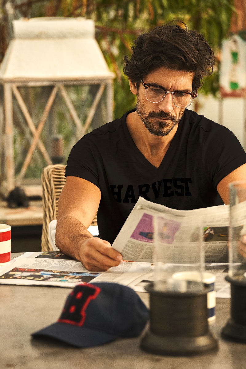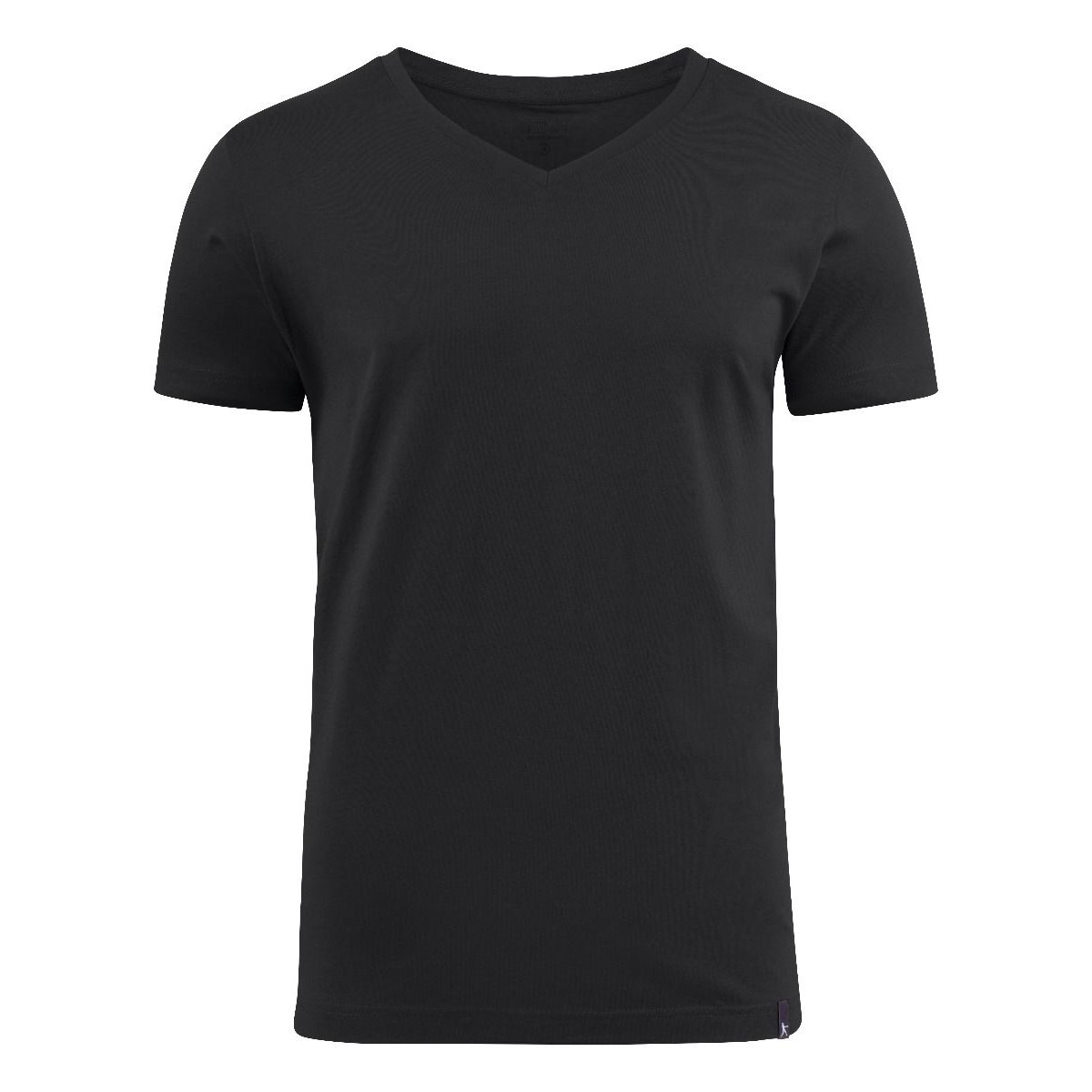 Mens V-neck T-shirt. 2-layered stretch rib in the neck.