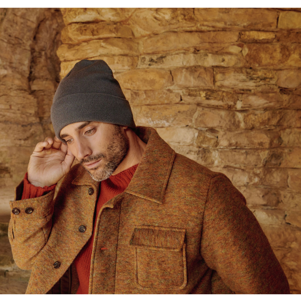 Knitted beanie with cuff, in recycled polyester yarn with recycled polyester inside Polartec® lining.