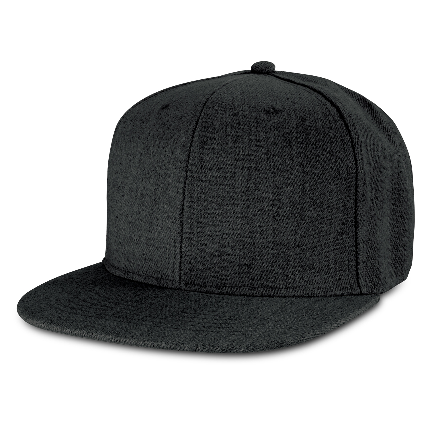 Premium structured six panel cap which is made from polyester. Features include a flat peak, embroidered eyelets, a sweatband and an adjustable snap back closure that allows one size to fit most people.
