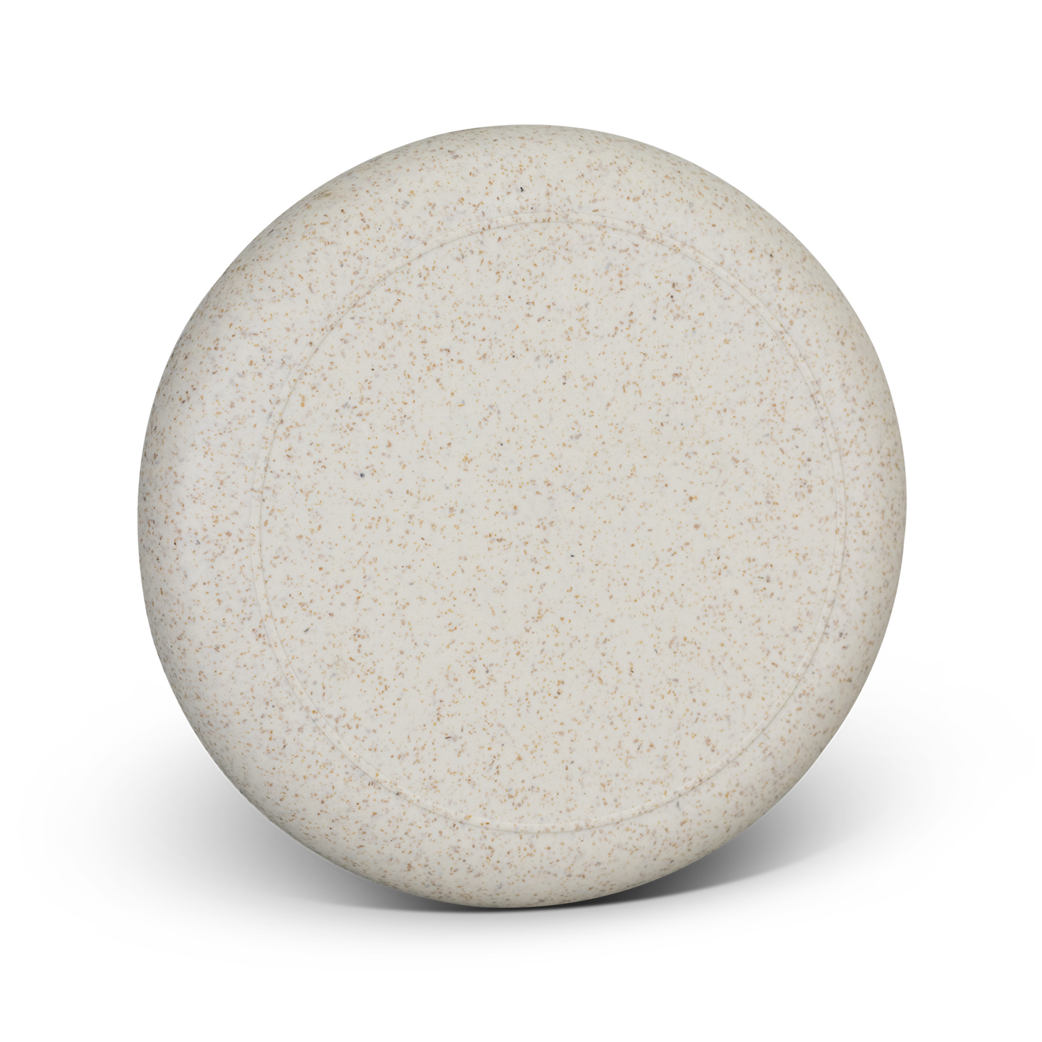 16cm recreational flying disc made from a blend of natural wheat straw fibre and polypropylene.