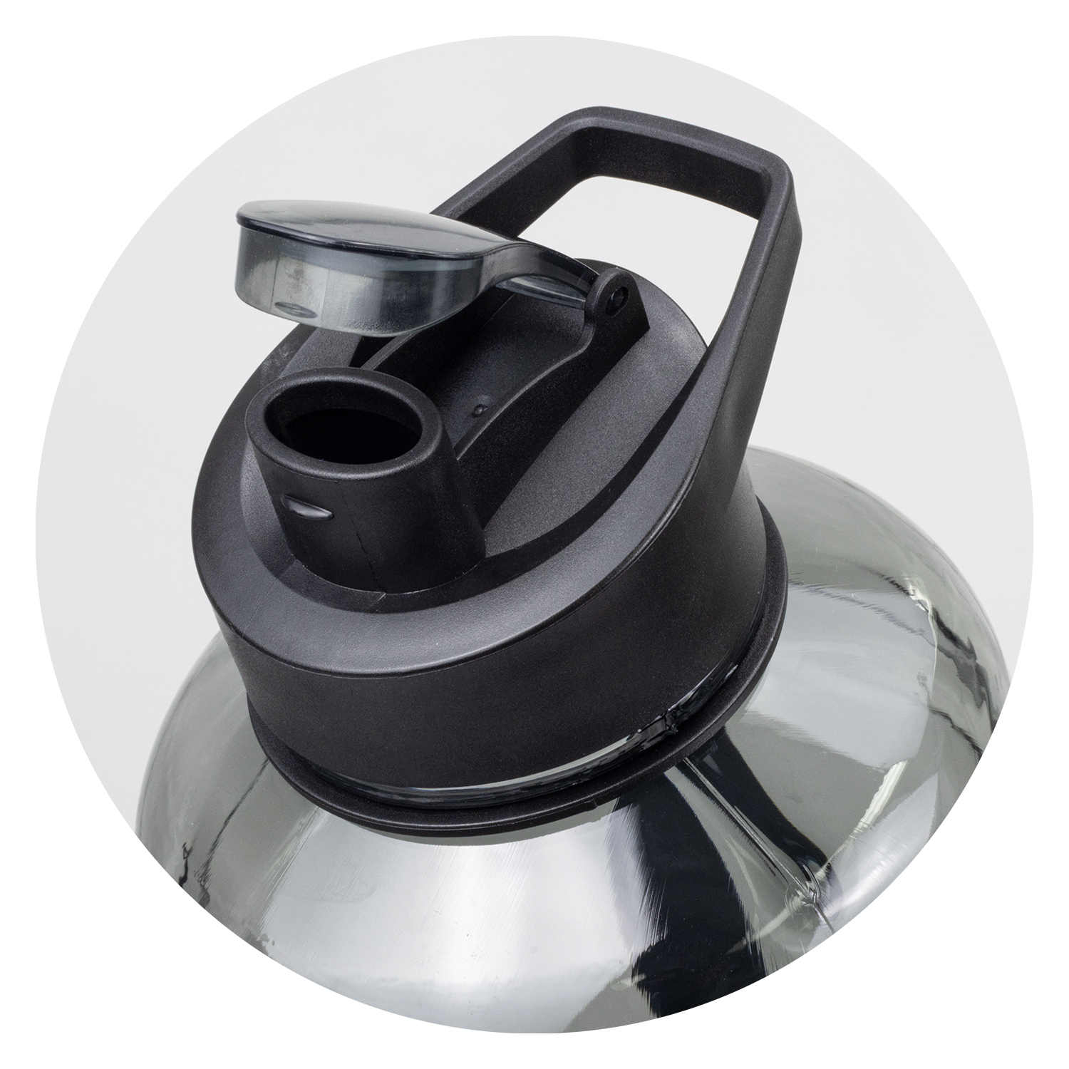 Practical 2.2L drink bottle, with a screw-on flip lid. It features a handle on the side of the drink bottle and a polyester wrist strap for easy transportation to the gym or on the sports field. The bottle is manufactured from Tritan which is odour-resistant and BPA-Free. The lid is manufactured from Polypropylene. This product is not dishwasher safe and handwashing is recommended.