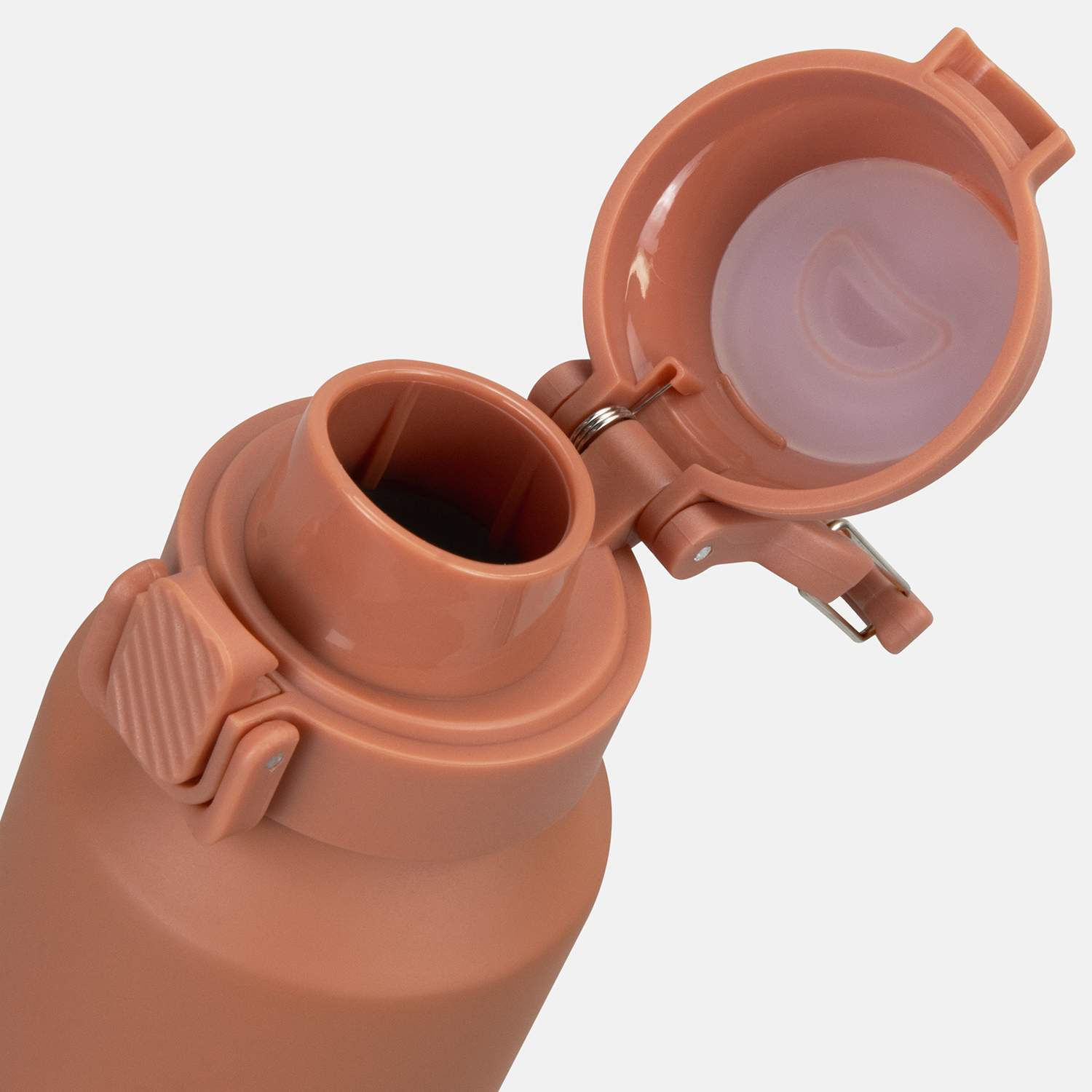 Extremely lightweight, BPA free, 600ml drink bottle made from recycled aluminium. It features a push-button cap with a secure lock mechanism and a built-in colour-matched carabiner for easy carrying or attachment to a bag. It is the perfect companion for work, travel, or outdoor adventures – practical and stylish.