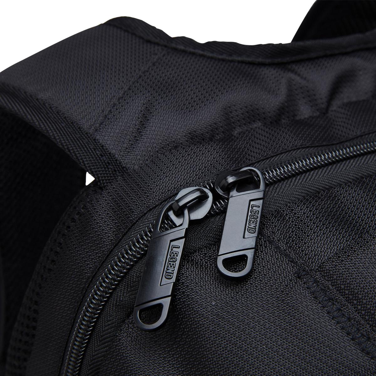 - Front zippered compartment features multi-function organiser
