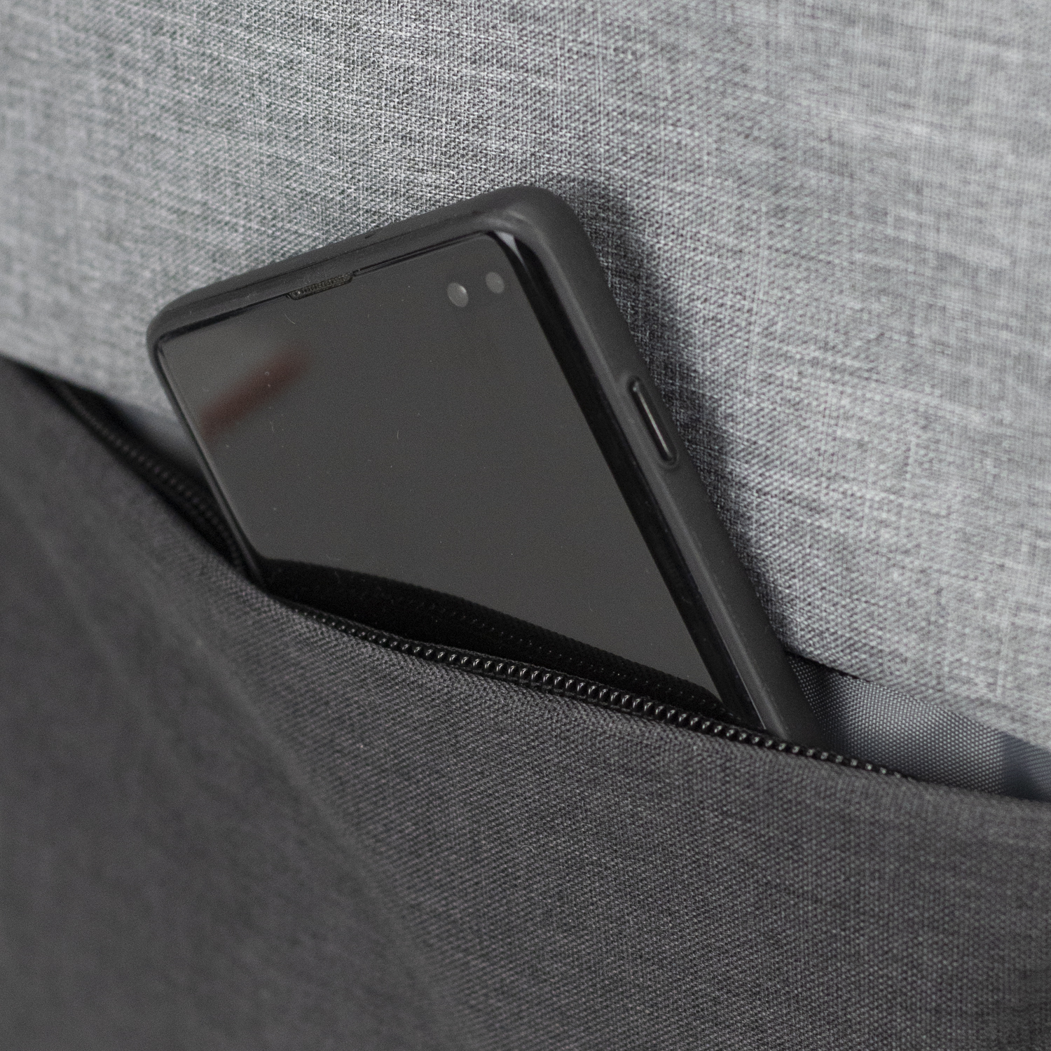 • Zippered main compartment and front pocket
