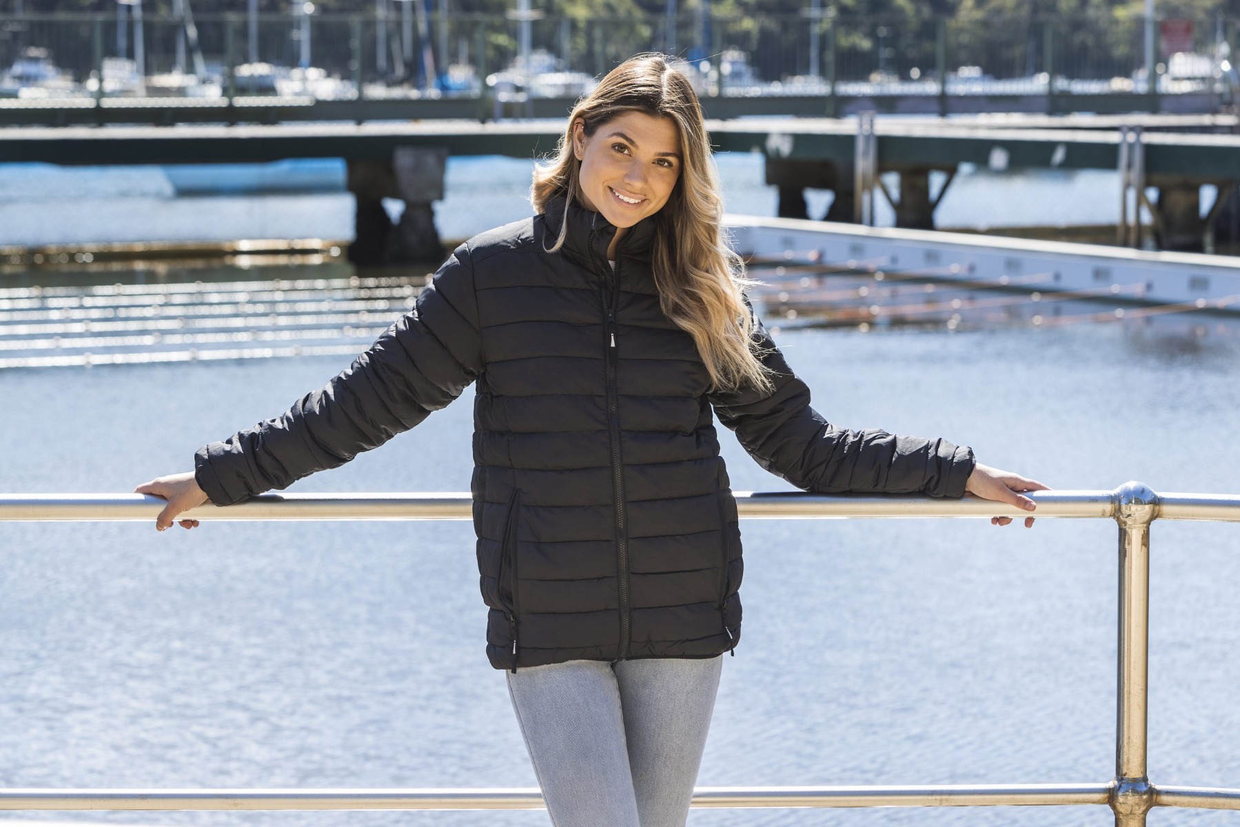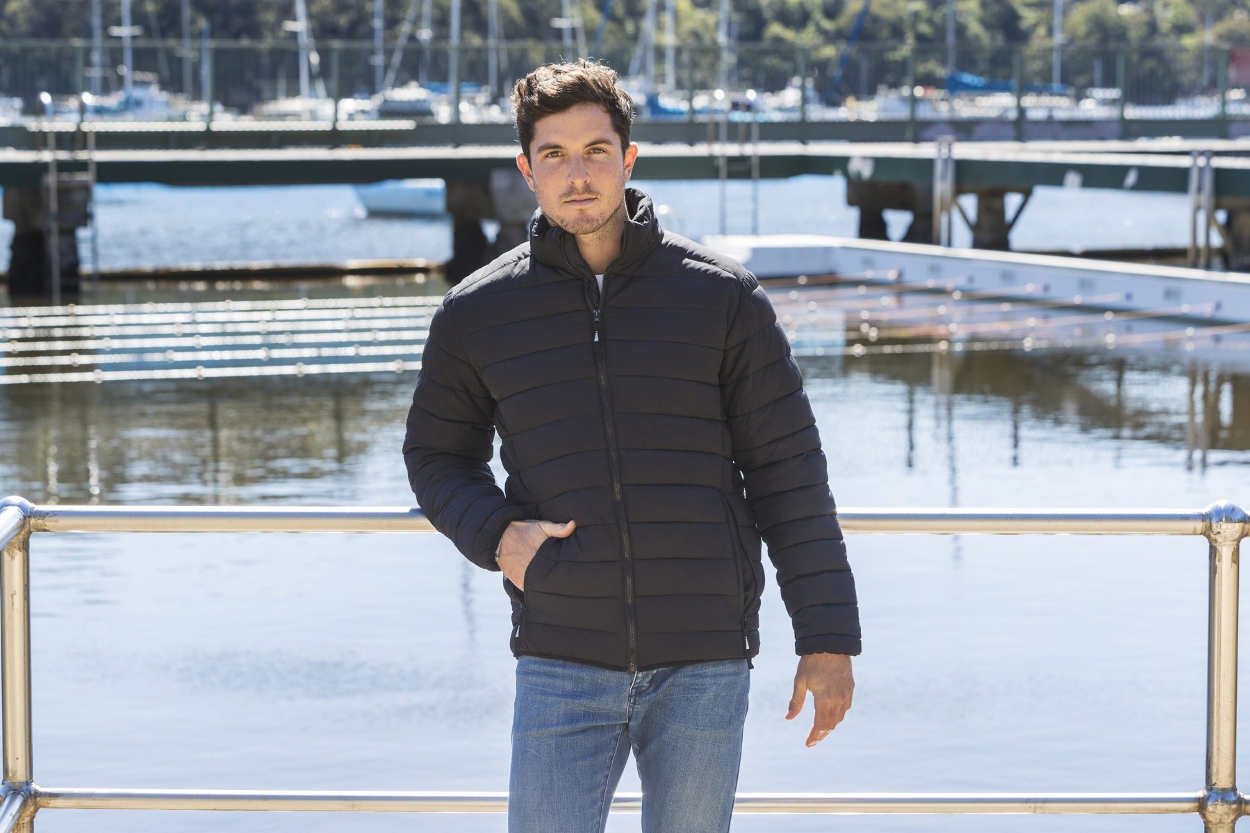 Unisex puffer jacket with two outside zip pockets, and one inside pocket with exit for ear phones. Micro fleece lining in collar. The lining can be opened for ease of decoration.