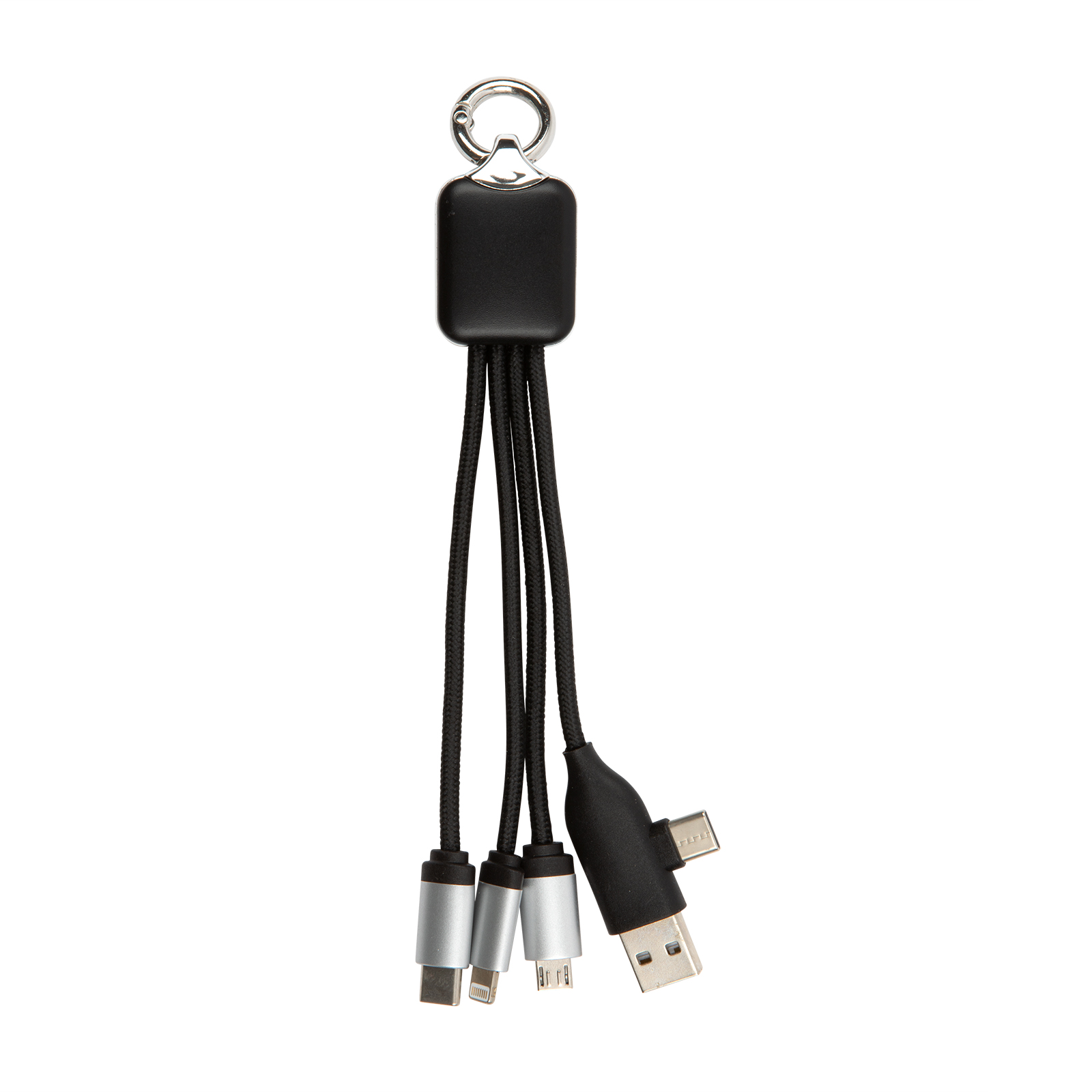 The Kinetic Square Glow Cable is the ultimate 4-in-1 charging solution, designed to simplify your device connectivity needs. This cable features Type C, Micro USB, 8 Pin power out, USB A, and Type C power in connectors, making it compatible with a wide range of devices. The illuminated square top section not only serves as a power indicator but also brings your laser-engraved design or logo to life with a captivating glow when connected to power. Crafted with a braided cable and silver connectors, it combines durability and style while offering an elegant, distraction-free charging experience. Perfect for those who need a reliable charging cable without data transfer capabilities.