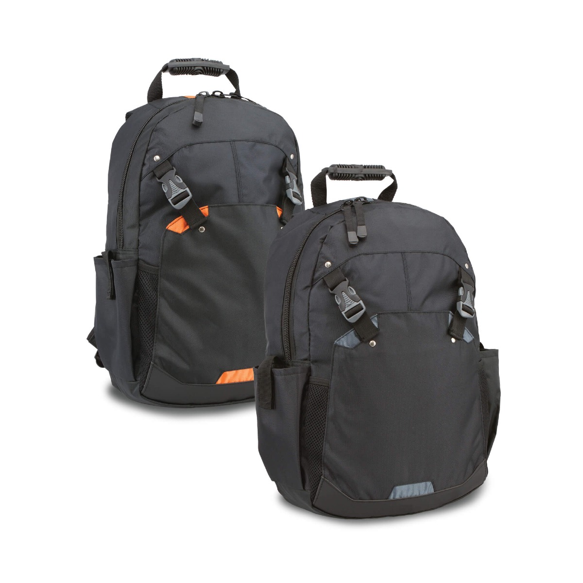 Fits 15” laptopDouble zippered main compartment contains padded laptop sleeve with slip pocket and valuables pocketSlip pocket under front flap contains hidden pocketAir mesh padded back and strapsWebbing zip pullersBusiness card holder on backSide pockets with Velcro closuresFront stash pocket secured by two front release clipsAdjustable shoulder strapsJacquard nylon/840D polyesterWebbing carry handle with moulded rubber gripSize: 30cm W x 47cm H x 12cm D Capacity: 17 Litres