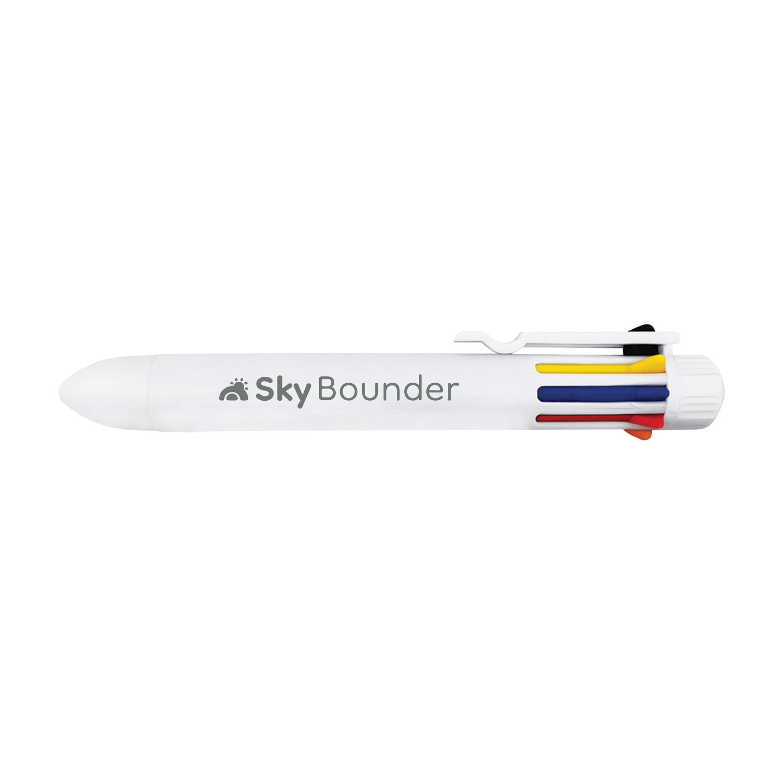 Bring a splash of colour to your notes, sketches, and everyday writing with the Mammoth Pen. This multi-ink ballpoint packs eight vibrant colours—black, yellow, blue, red, orange, green, purple, and pink—into one thick-barrel pen, making it easy to switch shades with a simple click. Handy and convenient, it’s perfect for students, creatives, and anyone who wants to add fun and flexibility to their writing. With its bright white barrel, the Mammoth Pen also provides a bold canvas for your branding.