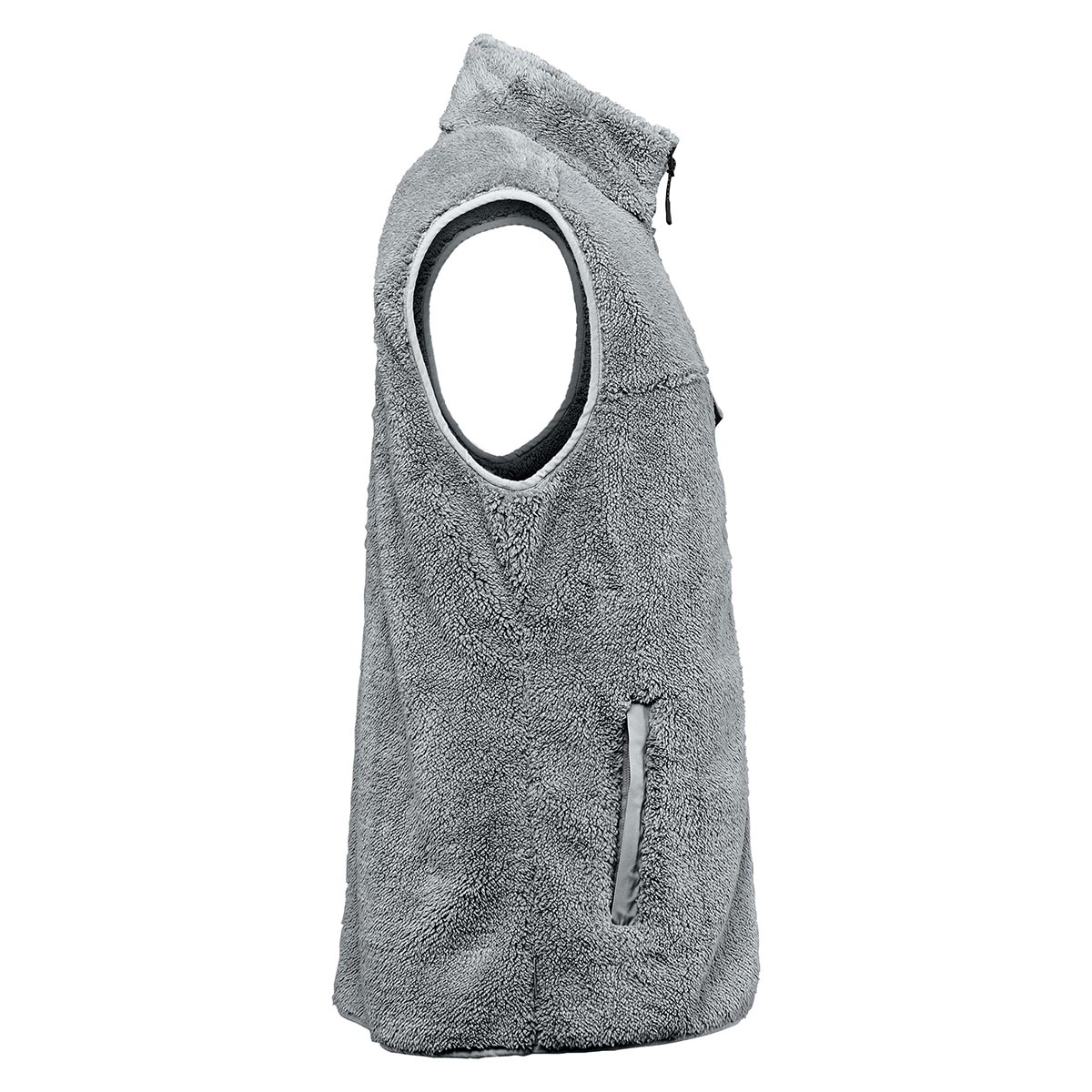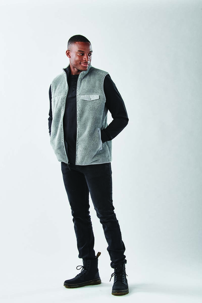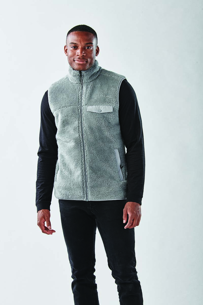 Designed for optimum warmth and comfort in both urban and outdoor environments. This high pile bonded sherpa fleece vest is indispensable on cold weather days. The high-zip collar allows for core temperature regulation and provides a snug, comfortable fit.