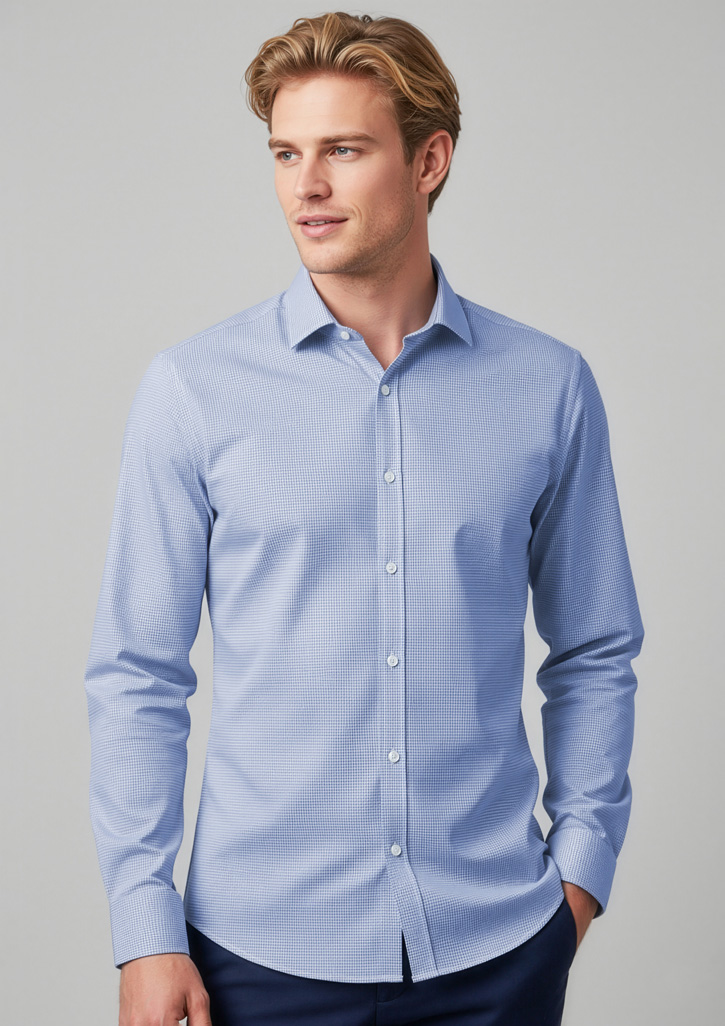 Stretch cotton with wrinkle resistant treatment for easy-care comfort.