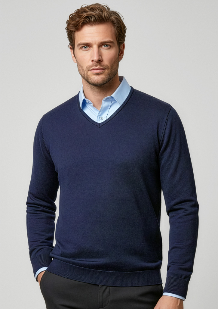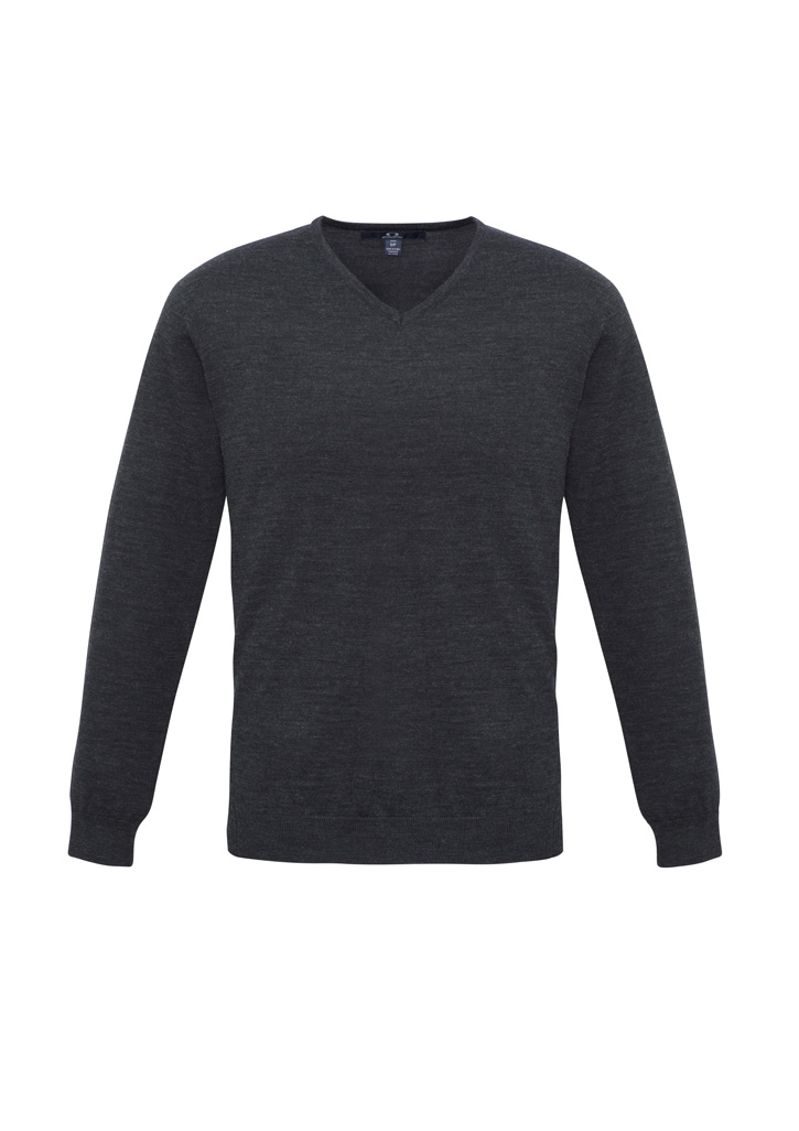 Contemporary V-neck style features ribbed side panel detail