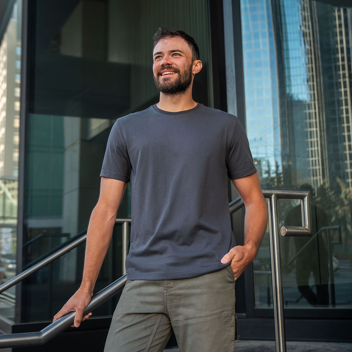 Men’s Stockton S/S Tee – TSX-6M The Stockton Short Sleeve Tee was built to feel like your favorite cotton tee but with built-in resilience. Using 60% Certified Cotton gives us the softness and natural hand feel we love, while blending in 40% Polyester ensures your favorite tee keeps its shape and performs better over time. The rib knit collar and taped neck seam were chosen for durability and comfort — details that make a big difference in how a tee holds up after repeated wear and wash. With UPF 50+ protection built in, the Stockton Tee is designed not just for softness but for everyday reliability in all conditions.