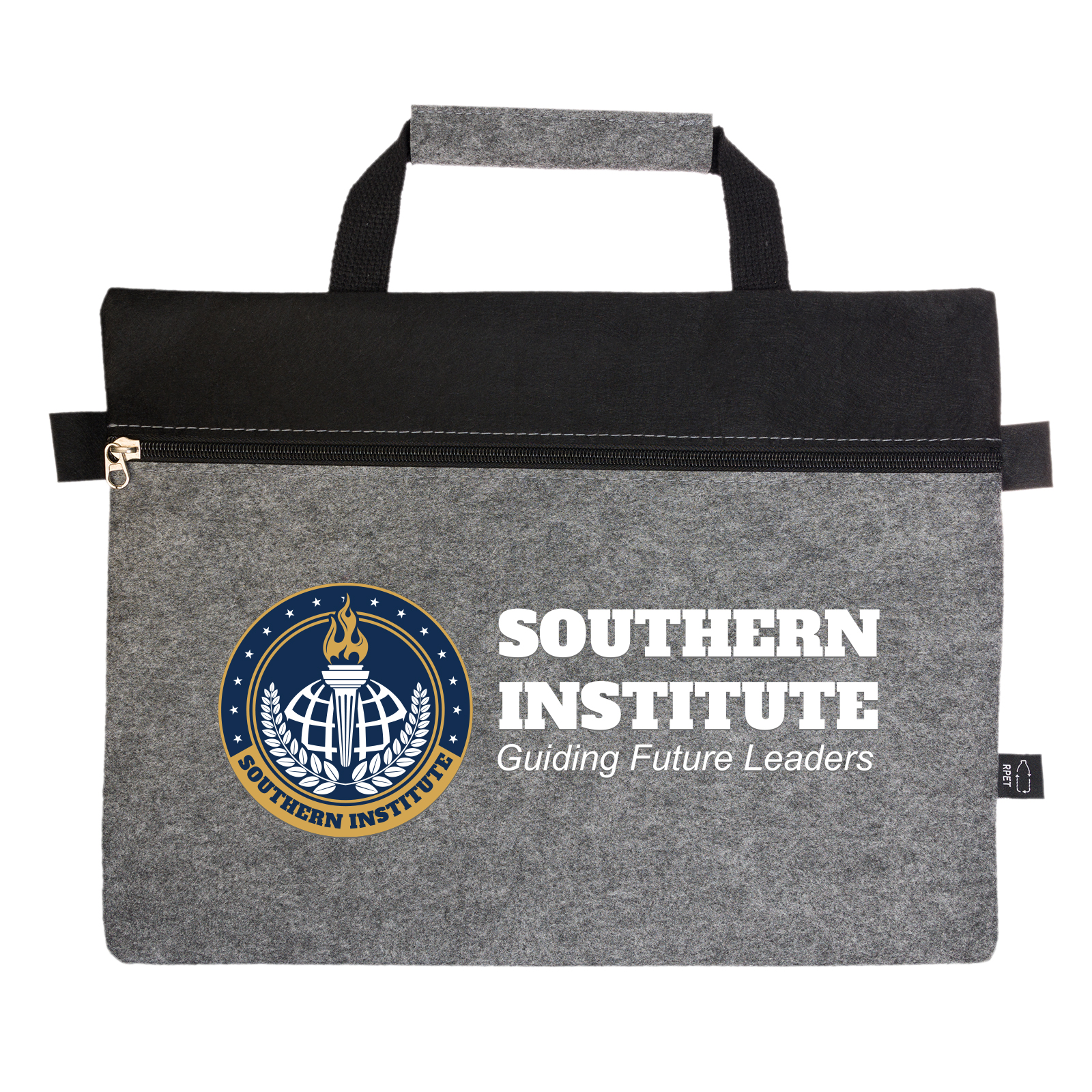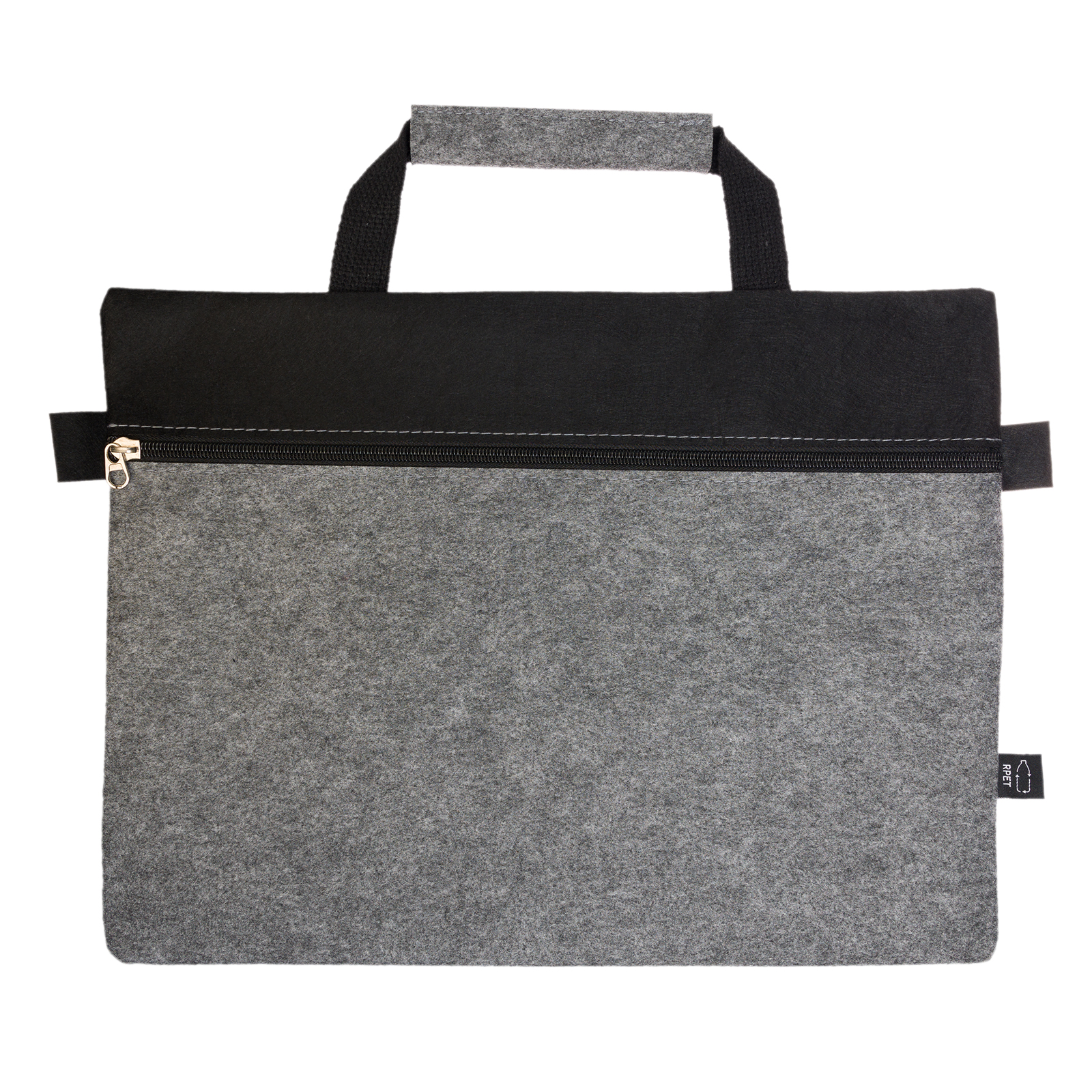Smart and streamlined, the Montana RPET Felt Satchel is designed to keep documents secure and organised while on the move. Made from 1mm RPET felt, created from recycled PET materials, this satchel features a zippered main compartment and a sturdy black webbing carry handle. The two-tone design combines a grey front with a solid black back, offering a clean and professional look, ideal for conferences, offices, or corporate gifting. Finished with a subtle RPET tag to highlight its recycled content.