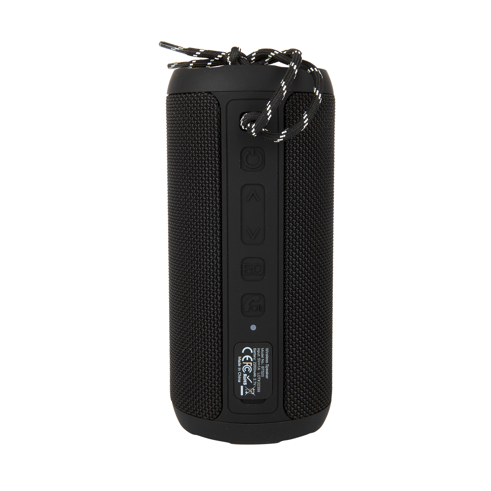 Elevate your music experience with the Neon Bluetooth Speaker—a robust, water-resistant speaker that delivers powerful sound with dual 6-watt drivers and an IP66 rating to withstand splashes and moisture. The sleek black body features LED illumination rings at each end that pulse to the beat of your music, creating a dynamic visual experience. With A2DP Bluetooth, hands-free call support, and a Micro SD card slot, the Neon offers versatile connectivity and convenience. Enjoy up to 15 hours of playtime with a 2200mAh battery, easy 2-3 hour charging via the included USB-A cable, and a wireless range of up to 10 metres.