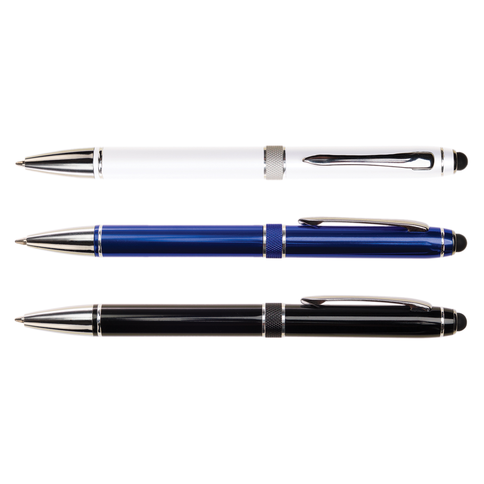 - Sleek Aluminium Pen – Twist-action ballpoint pen with a built-in stylus for touchscreens.