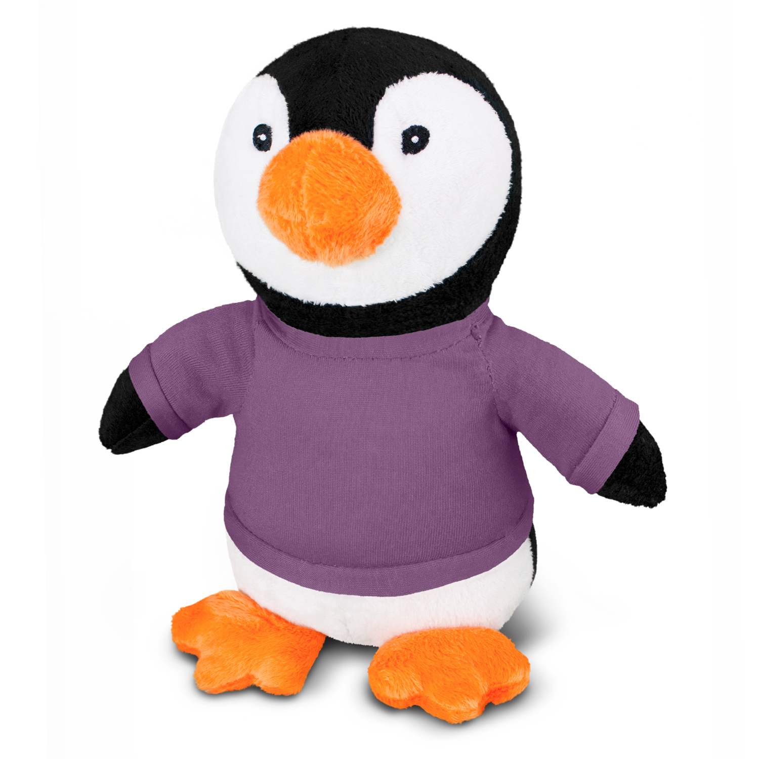 Soft penguin plush toy with embroidered eyes, RPET and a polyester t-shirt which is available in eleven colours. Plush animals provide a cute and cuddly branding option and are great for brand recognition and spreading goodwill. They have also been manufactured to meet AS/NZS Safety Toy Standards.