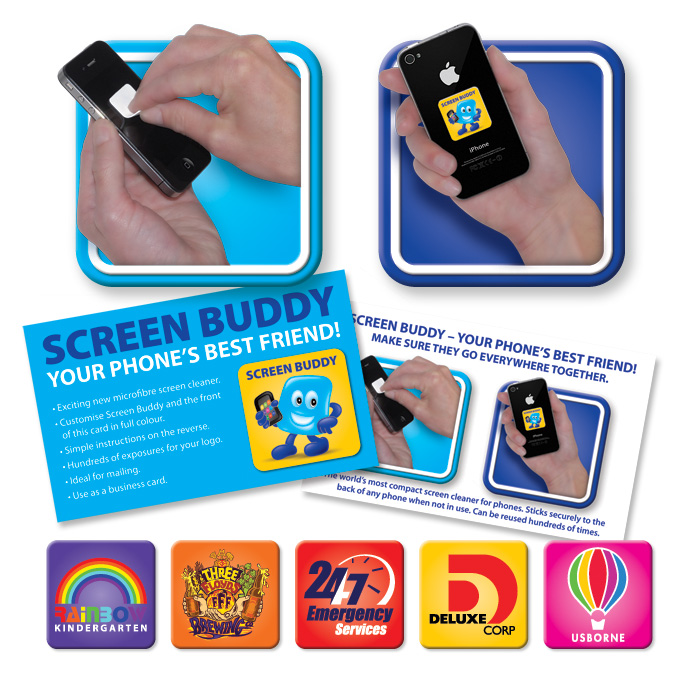 Screen Buddy is your phone’s best friend. This compact mini screen cleaner has a microfibre cleaning surface and a resilient adhesive backing that remains sticky for hundreds of uses. It sticks securely to the back of a phone when not in use and is presented on a business card with simple instructions on the reverse. The front of the card and the Screen Buddy can be branded in spot colours or full colour at no extra cost. Special sizes and shapes for Screen Buddy and the card are available on request. A production lead time of 20 working days applies to this product by airfreight and larger orders can be sea freighted on request to reduce the freight cost.