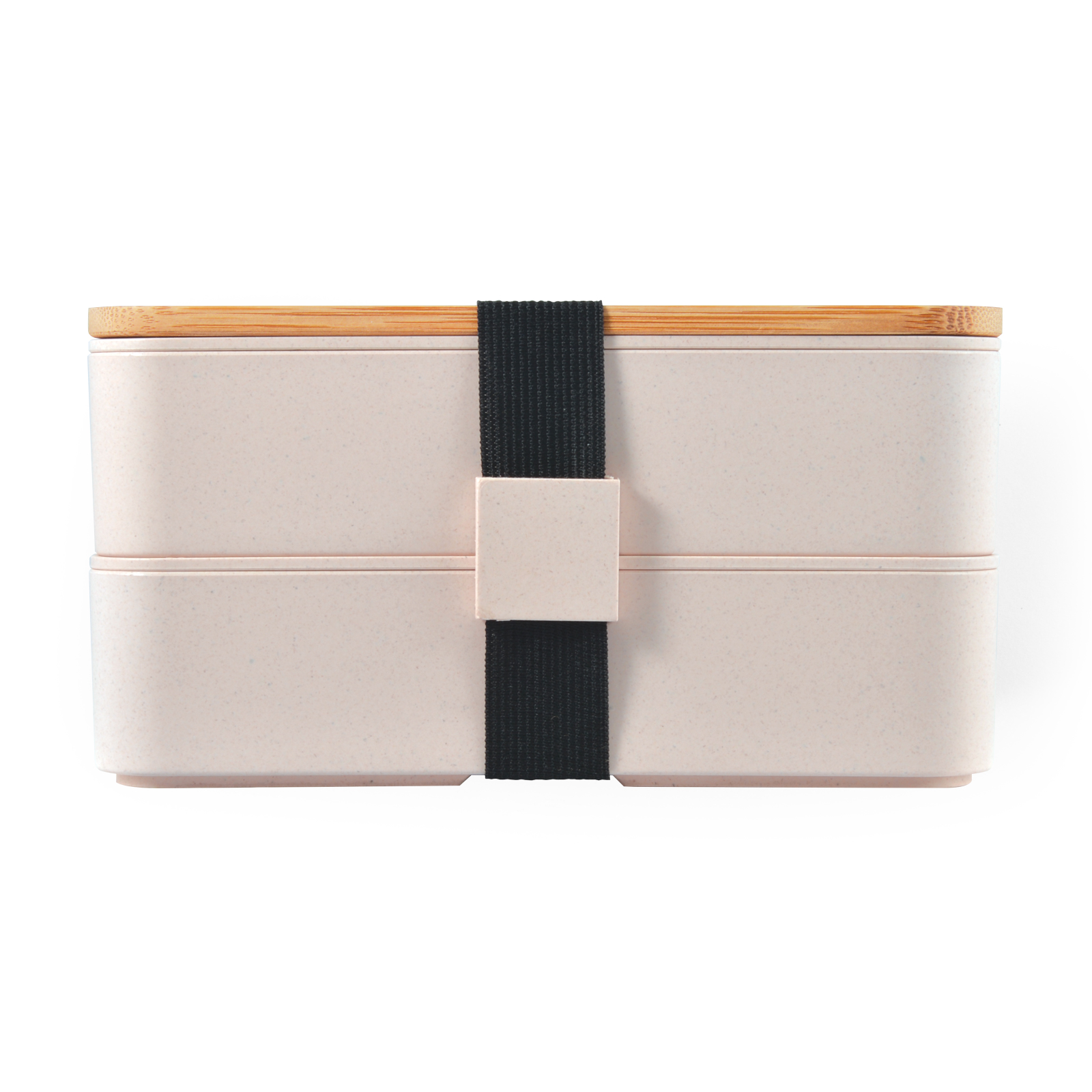 Introducing our 2-tier lunch box, crafted from a 50% blend of wheat fibre and BPA-free polypropylene, our 2-tier lunch box offers a sustainable alternative to traditional plastic lunch containers. It features two compartments for convenient meal separation, allowing you to keep your main course separate from sides or snacks. The middle compartment is equipped with an elastic strap to securely hold the included knife, fork, and spoon, eliminating the need for disposable cutlery and promoting sustainability. This lunch box also comes with a bamboo lid, making food preparation easy while adding a touch of natural elegance. It serves as an eco-conscious alternative to single-use plasticware, contributing to a healthier planet by reducing waste. While it's suitable for reheating food in the microwave, please note that it's not intended for cooking. For maintenance, hand washing is recommended to preserve the longevity of the logo on the lunch box and ensure continued quality.
