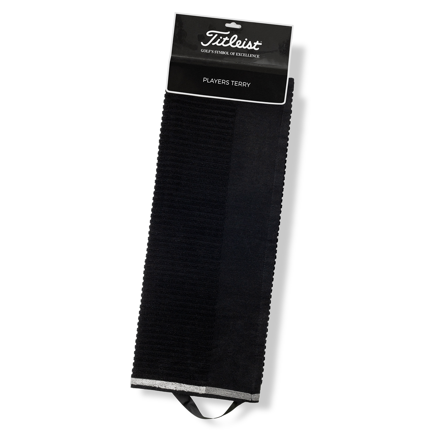 This premium golf towel from Titleist is made using cotton terry towelling, using full-loop terry cloth for maximum absorption. Measuring 500mm x 1000mm, the towel has a handy loop for attaching to a golf caddy and is the perfect companion on the green to keep gear clean and dry. The towel is presented on a Titleist branded heading card and features the Titleist logo on a sewn-in label.