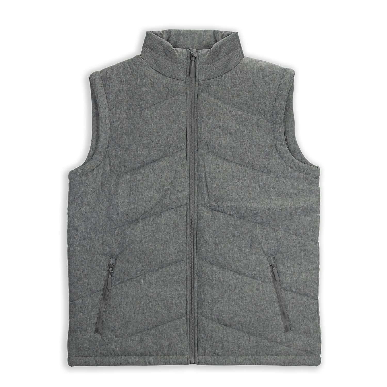 - Midweight men’s puffer vest with 100% polyester outer shell and 100% nylon lining
