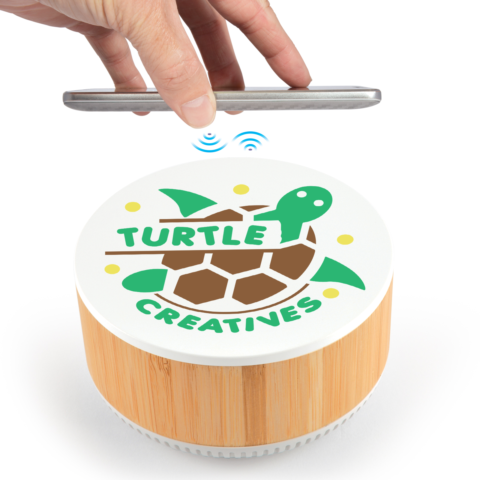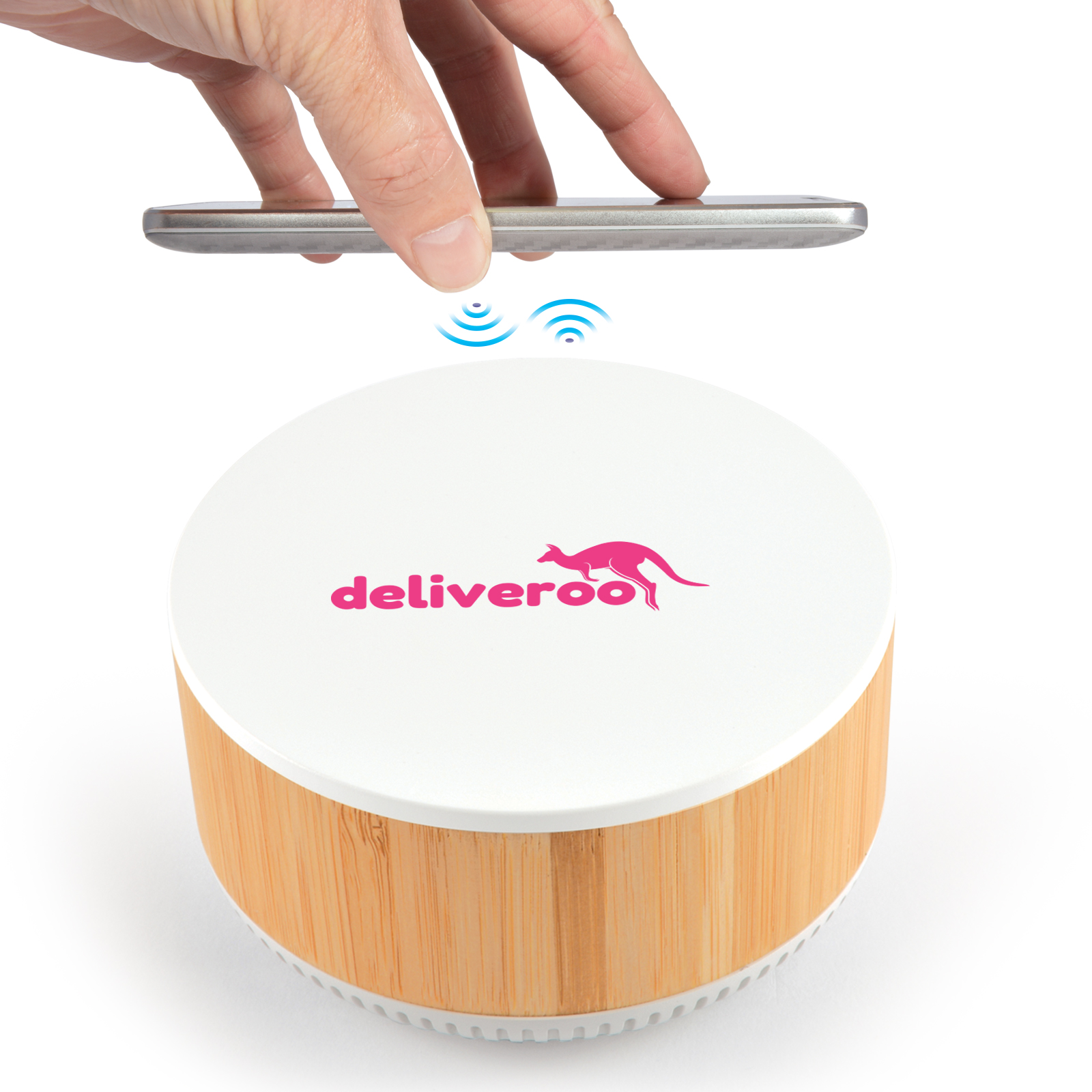 Introducing the Typhoon Speaker & Wireless Charger—a sleek and eco-conscious 3W Bluetooth speaker with a recycled ABS body and bamboo veneer finish. This versatile device features a white wireless charging pad capable of fast charging at 5W, 7.5W, 10W, and 15W, depending on the power source and cable used. Connect to a 9V/2A power source for fast charging or a 5V/2A source for standard charging. With up to 8 hours of playtime and a wireless range of up to 10 metres, the Typhoon offers clear sound and convenient hands-free functionality. Supplied with a Type C cable and instructions for easy setup.