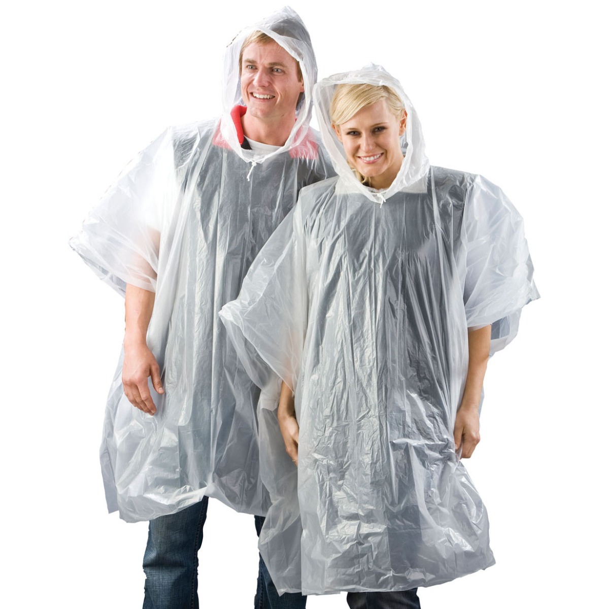 100% DegradableRecyclableRe-usableAdult Unisex PonchoRoomy drawstring hoodWaterproof, lightweight & compactClear frosted colourResealable clear bagOne size fits all