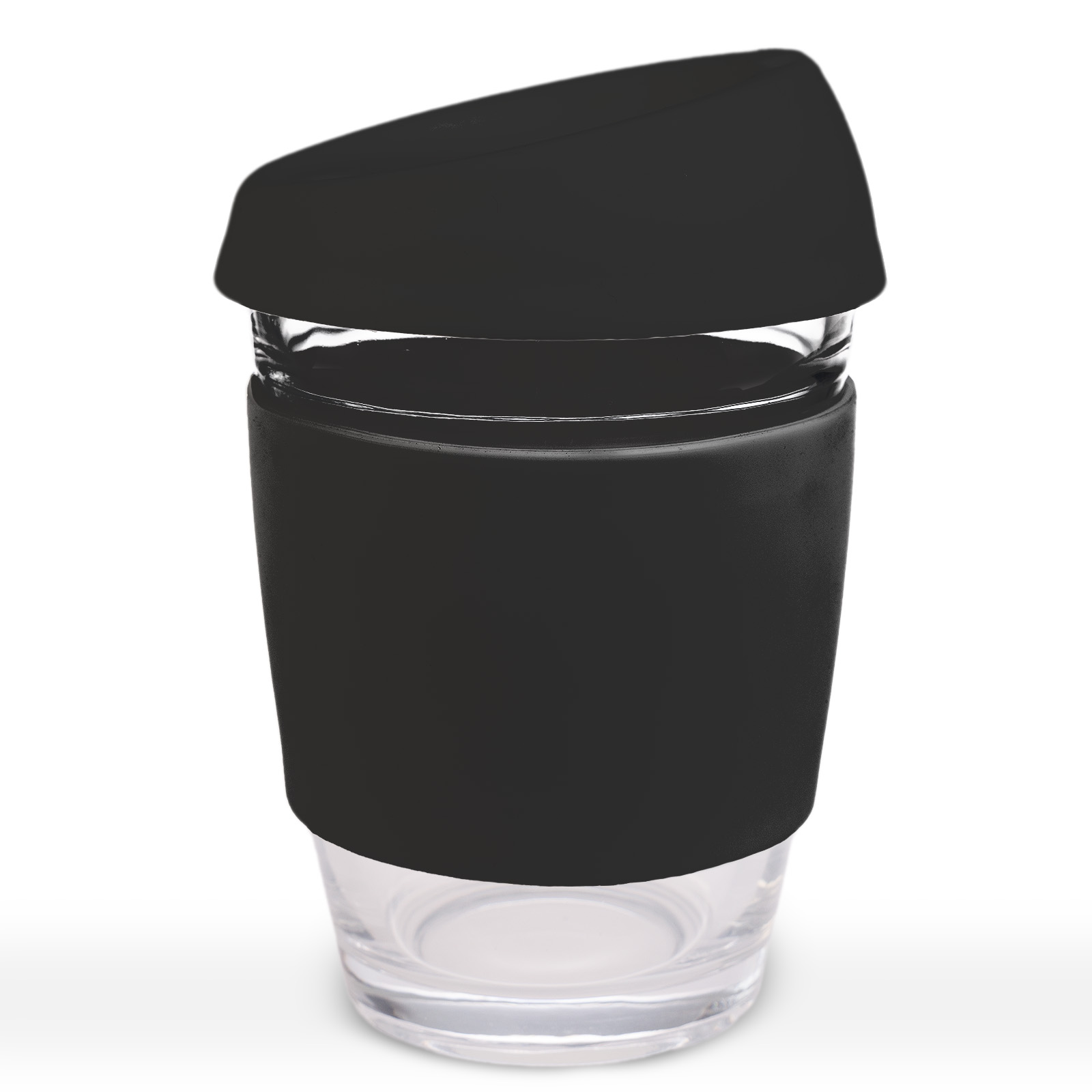 320ml glass reusable coffee cup. With silicone sleeve and lid. Made from Borosilicate glass known for its durability and thermal shock resistance. Select your choice of lid and silicone sleeve colours. Packed in a kraft gift box. For logo longevity, hand washing is recommended. Eco Credentials: Reusable, sustainable, printed using renewable energy.