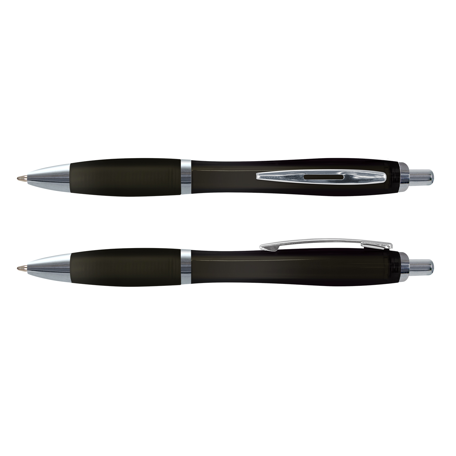 Retractable plastic ballpoint pen with a translucent barrel, a frosted translucent soft-touch grip and shiny chrome trim. It has a black large volume refill with 1800 metres of German manufactured Dokumental ink and can be presented in an optional pen sleeve.