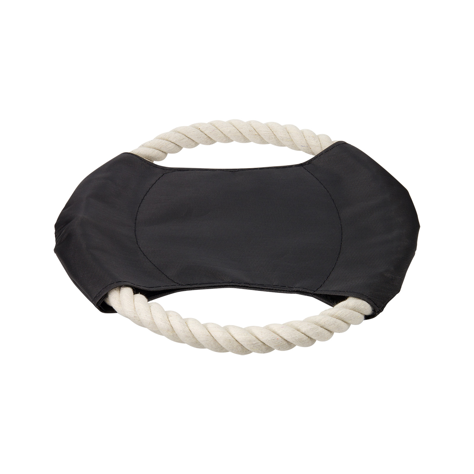 • Dog toy with polyester panel attached to a rope ring.